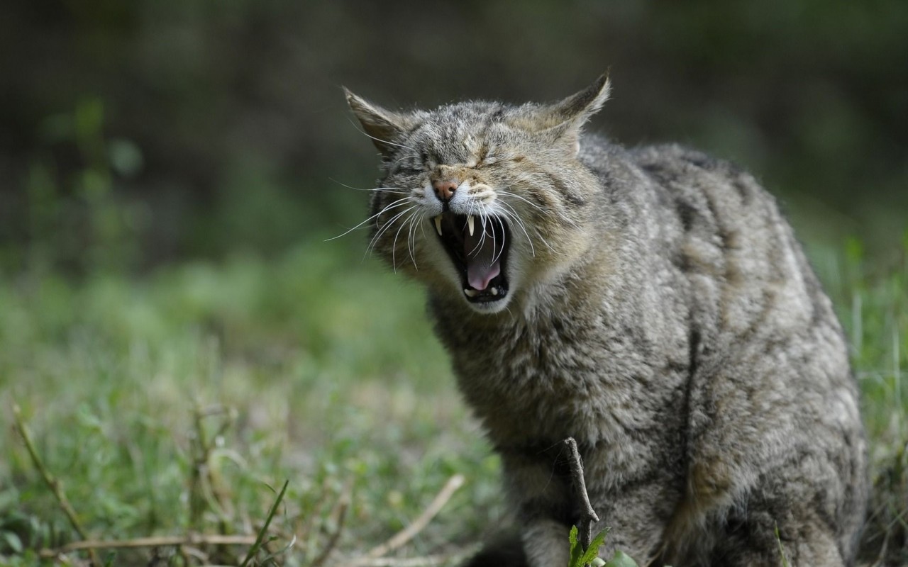 Wild cat yawning HD Wallpaper - 1280x800