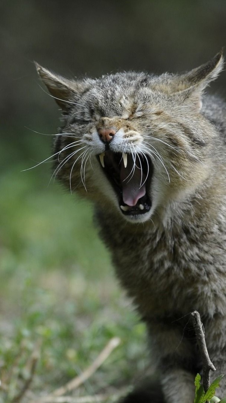 Wild cat yawning HD Wallpaper - iPhone 6 / 6S