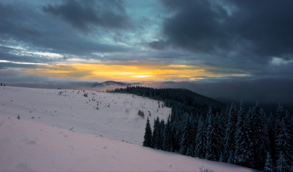 Winter at mountains HD Wallpaper - 1024x600