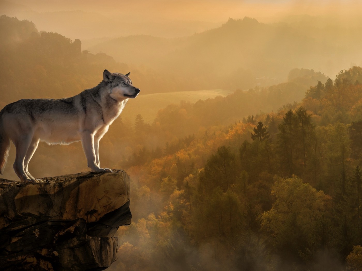 Wolf at the edge of a cliff HD Wallpaper - 1400x1050