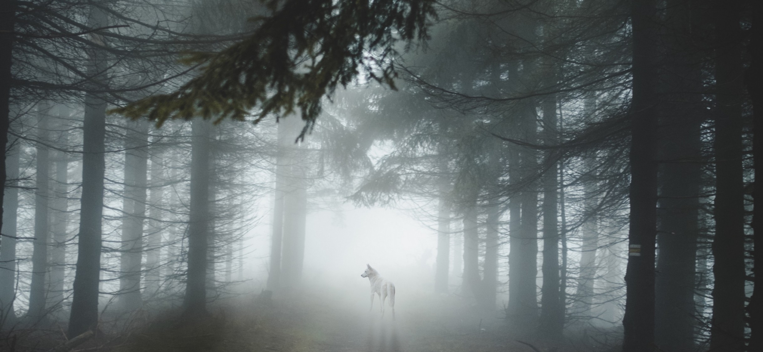 Wolf staring on a foggy forest HD Wallpaper - iPhone X