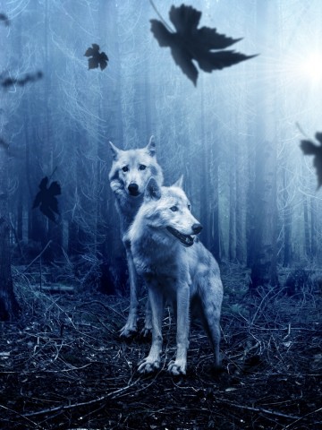 Wolves at night in the forest HD Wallpaper - 360x480
