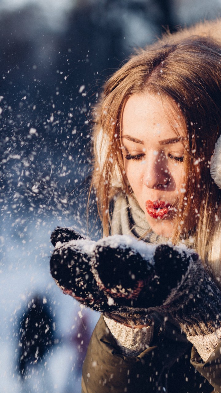 Woman Blowing Snow from Hand HD Wallpaper - 720x1280
