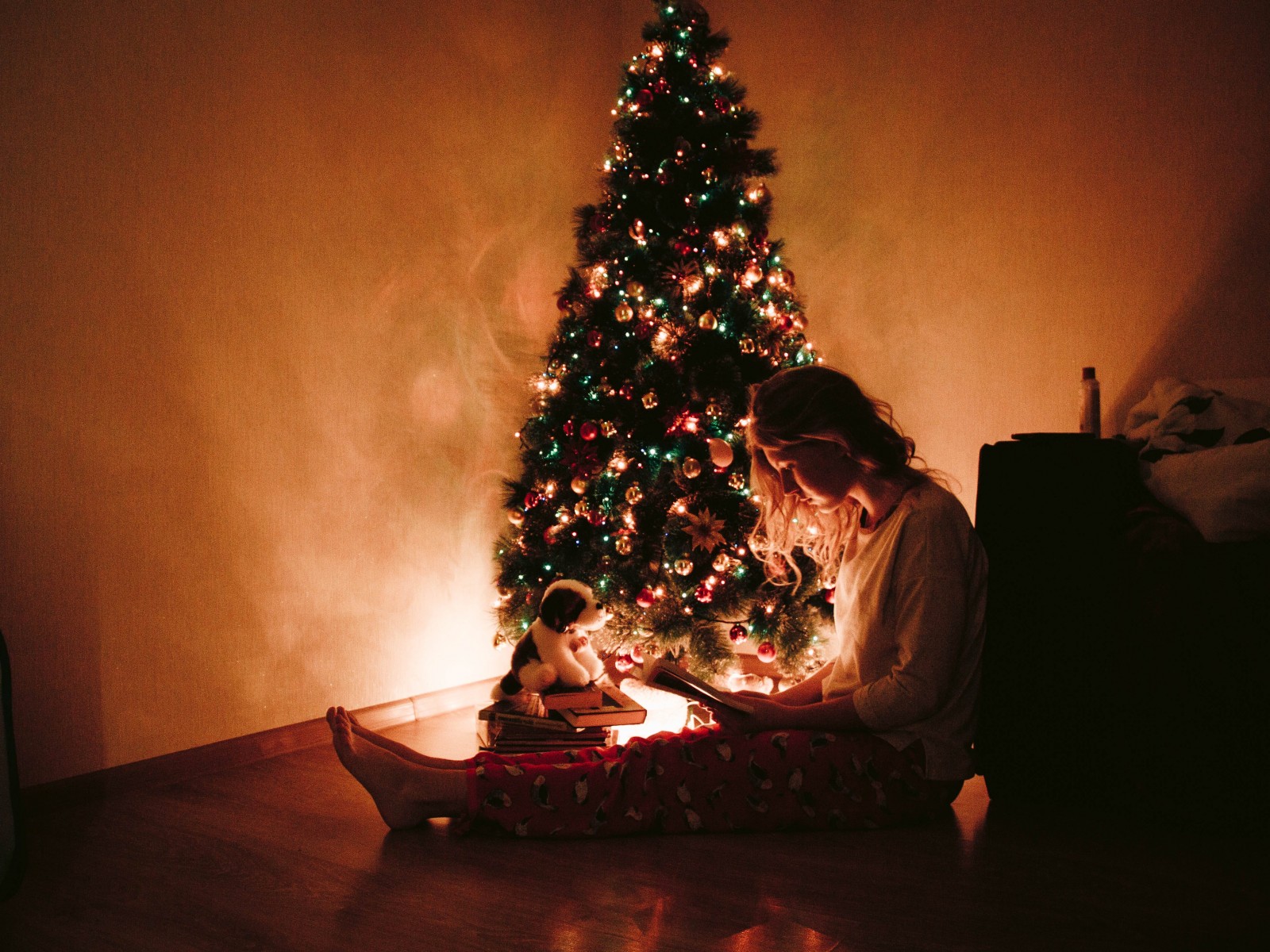 Woman Sitting Near the Christmas Tree HD Wallpaper - 1600x1200