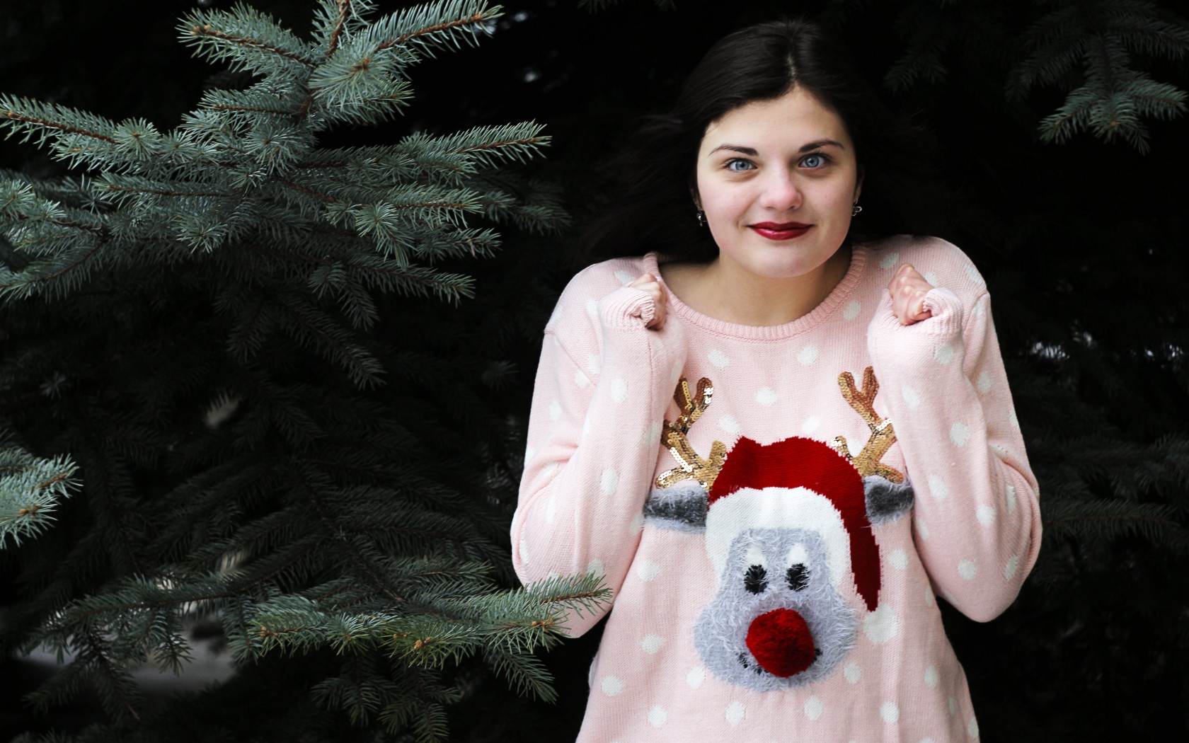 Woman Standing in Front of Green Christmas Tree HD Wallpaper - 1680x1050