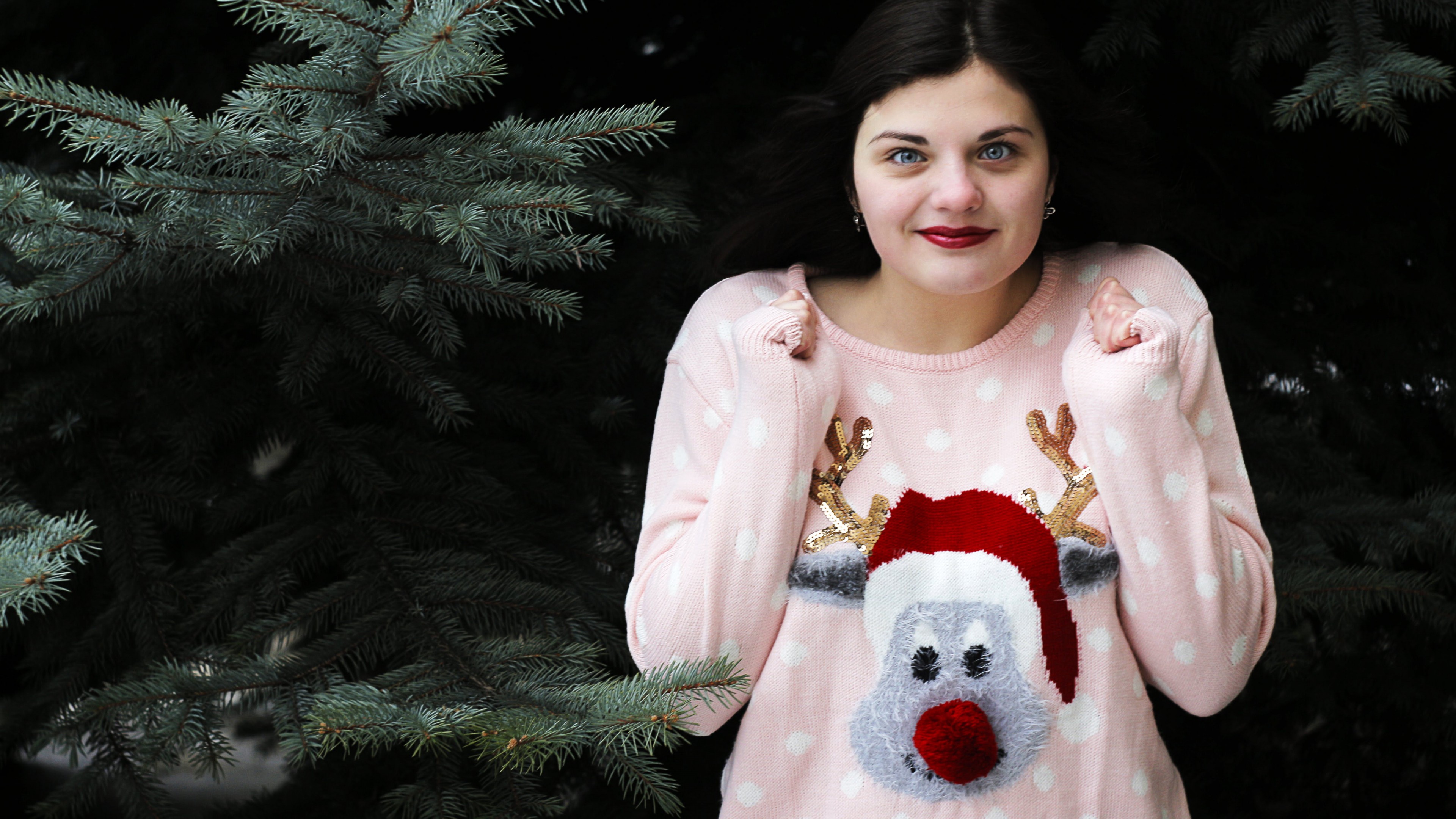 Woman Standing in Front of Green Christmas Tree HD Wallpaper - 4K Ultra HD