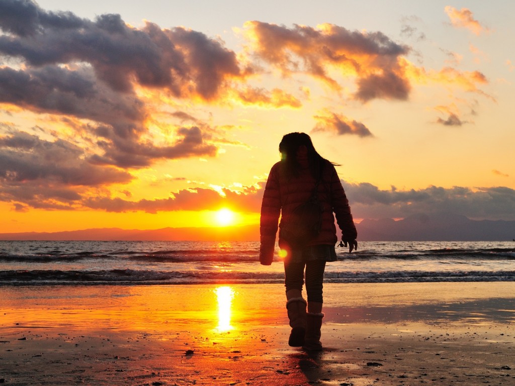 Woman walking alone at the sea HD Wallpaper - 1024x768