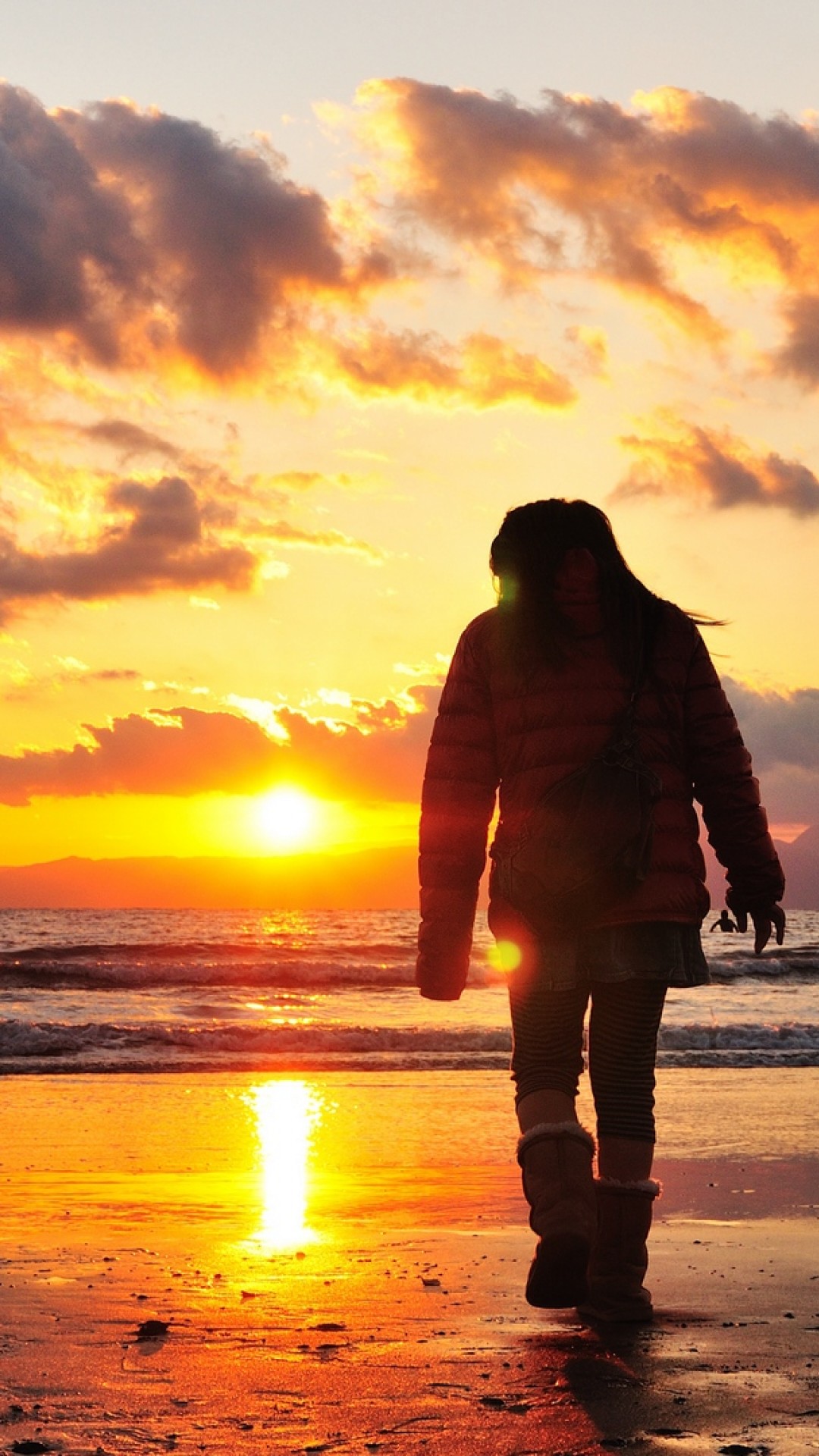 Woman walking alone at the sea HD Wallpaper - iPhone 6 / 6S Plus