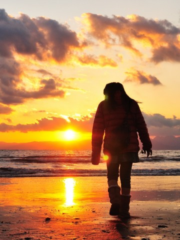 Woman walking alone at the sea HD Wallpaper - 360x480