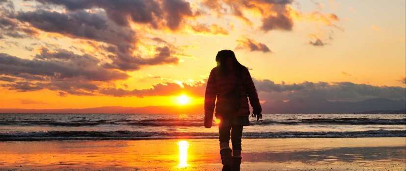 Woman walking alone at the sea HD Wallpaper - Facebook Cover Photo