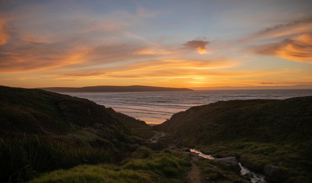 Wonderful sea sunset HD Wallpaper - 1024x600