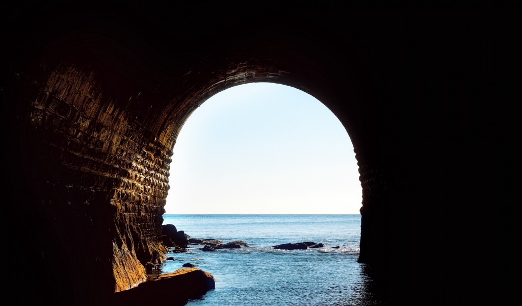 Wonderfull view inside a sea cave HD Wallpaper - 1024x600