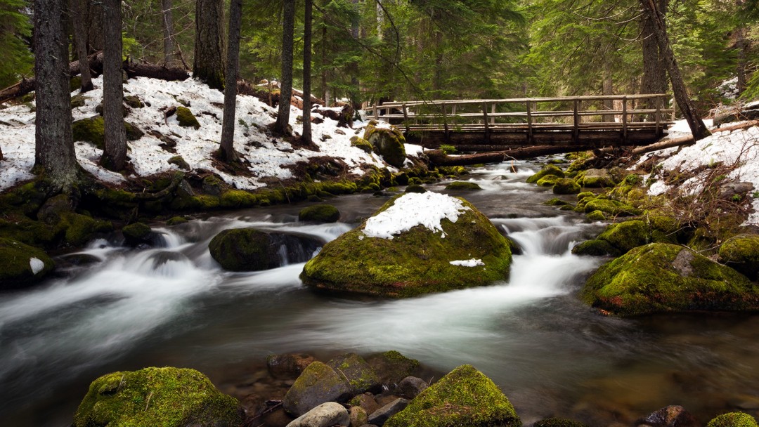 Wooden bridge over forest in winter HD Wallpaper - Google Plus Cover Photo