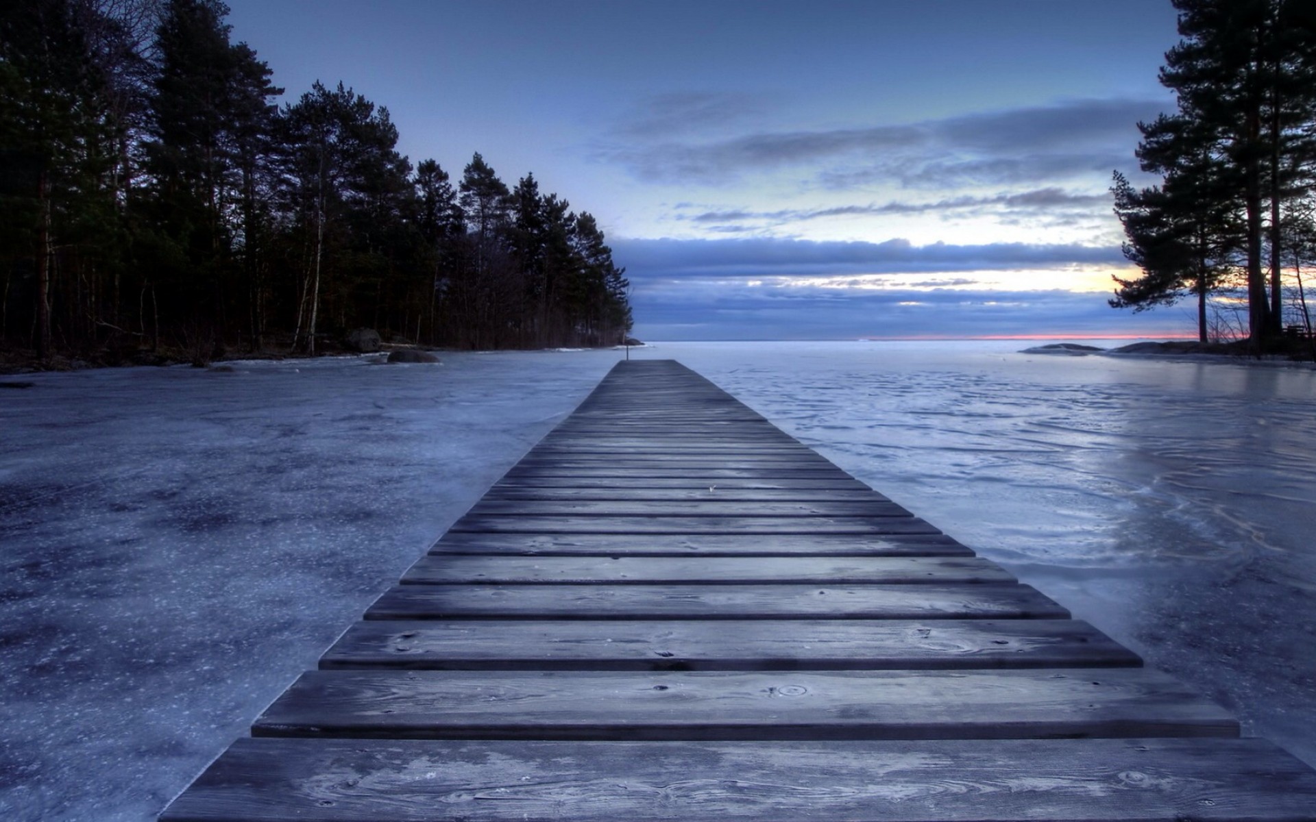 Wooden pier in a cove at dusk HD Wallpaper - 1920x1200